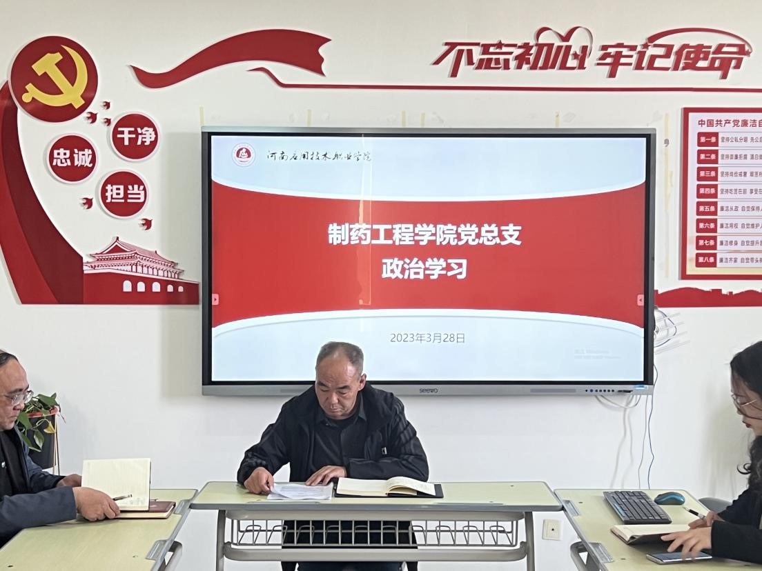 根据公司党委宣传部(统战)部安排,制药工程公司党总支于2023年3月28日下午在501党员活动室开展政治理论学习专题会,会议由公司党总支书记窦传斌主持,全体教职工参加了学习。