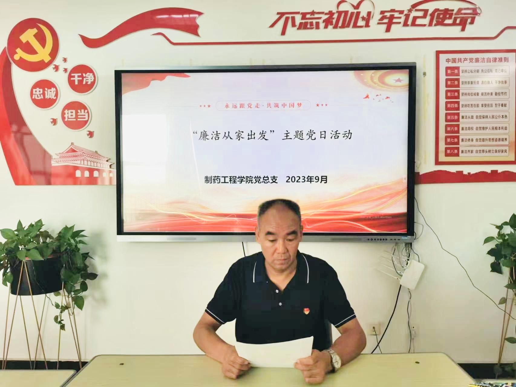 为深入贯彻党的二十大精神,落实关于一体推进“三不"、 廉洁文化建设和家风建设精神,学习贯彻习近平总书记“注重家庭、注重家教、注重家风”重要讲话精神,引导、强化党员干部纪律、责任意识,切实筑牢拒腐防变思想道德防线。9月19日,制药工程公司党总支在501党员活动室开展“廉洁从家出发”主题党日活动。活动由党总支书记窦传斌主持,全体党员参加了活动。
