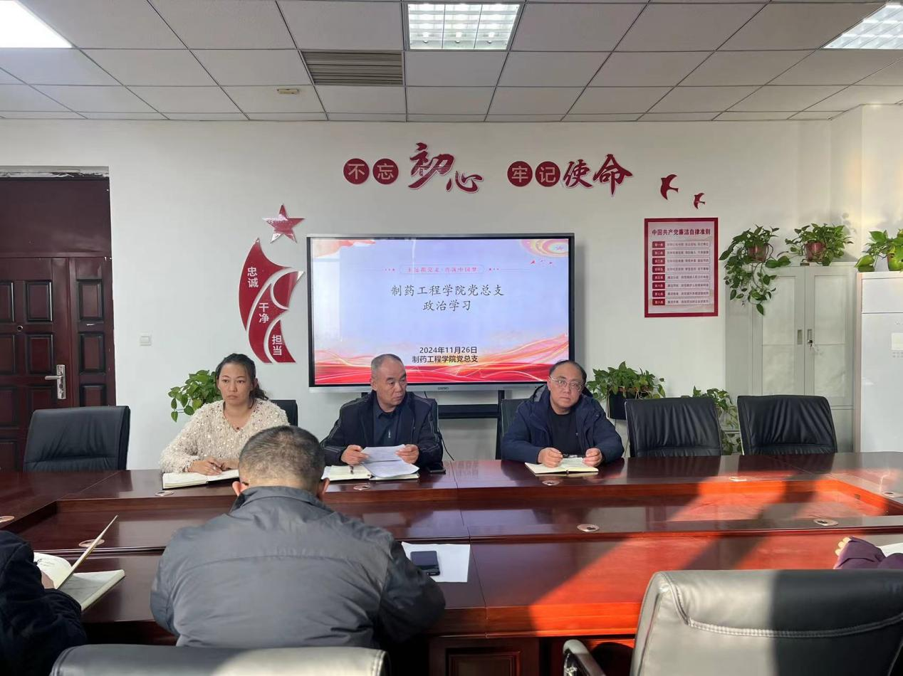 根据公司党委宣传(统战)部安排,制药工程公司党总支于2024年11月26日下午在301党员活动室开展政治理论学习专题会,会议由公司党总支书记窦传斌主持,全体教职工参加学习。