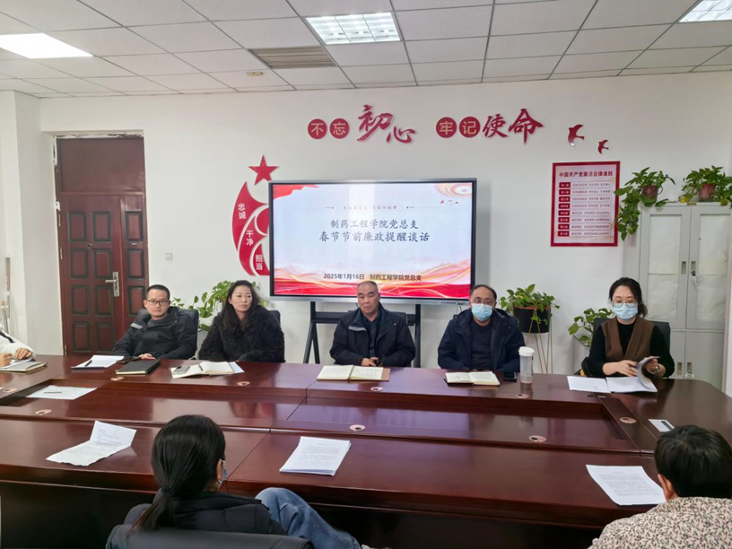 为深入学习贯彻党的二十大、党的二十届三中全会精神,持续推动党的纪律学习教育走深走实,拧紧“思想关”、守好“廉洁心”、绷紧“作风弦”,2025年1月16日,制药工程公司党总支在301党员活动室开展“知敬畏存戒律守底线,廉洁从业守初心”主题党日暨春节前廉洁教育集中谈话活动,活动由党总支书记窦传斌主持,公司全体党员参加。