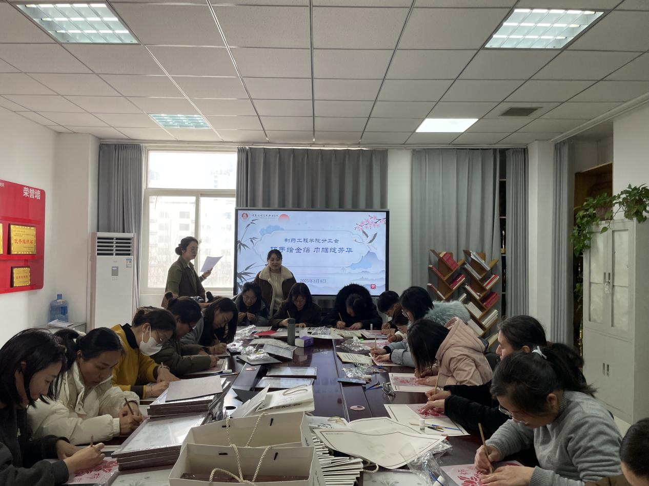 为庆祝三八妇女节,丰富公司教师的精神文化生活,传承弘扬非物质文化遗产3月4日下午,制药工程公司工会在301活动室组织全院教职工开展“巧手绘金箔 巾帼绽芳华”金箔画制作活动。