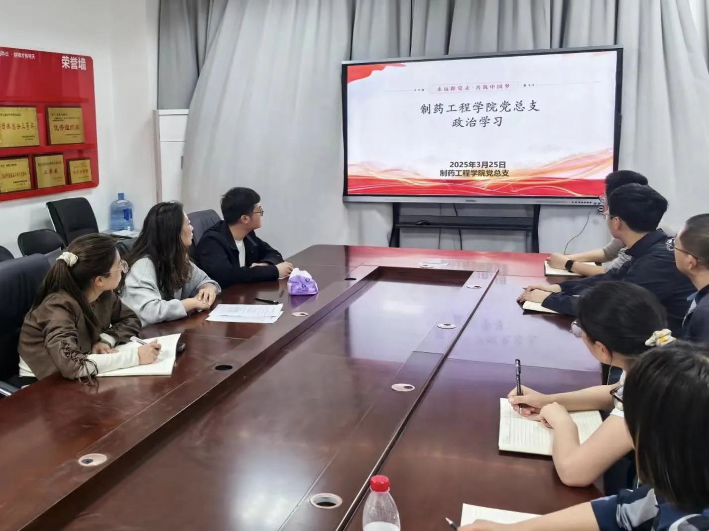 根据公司党委宣传(统战)部安排,制药工程公司党总支于2025年3月25日下午在301党员活动室开展政治理论学习专题会,本次学习由总支纪检委员、副经理高莉丽主持,全体教职工参加学习。