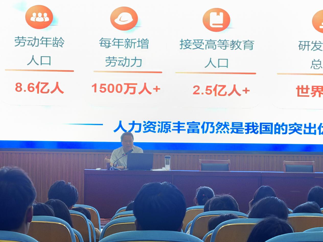 课堂上,常新中以生动鲜活的案例、深入浅出的语言,结合时事热点与社会发展实际,围绕“人口发展面临新形势”“人口问题全面辩证看”“推进人口高质量发展”三个方面展开了精彩讲授。他指出,人口发展是关系中华民族伟大复兴的大事,党的十八大以来,习近平总书记对人口问题高度关注,提出一系列科学判断,作出一系列重要论述。他引用了近年来我国在教育、科技领域的投入与成果案例,并详细剖析背后蕴含的深刻道理,让同学们深刻认识到提升人口素质和质量对经济社会发展的重要性。