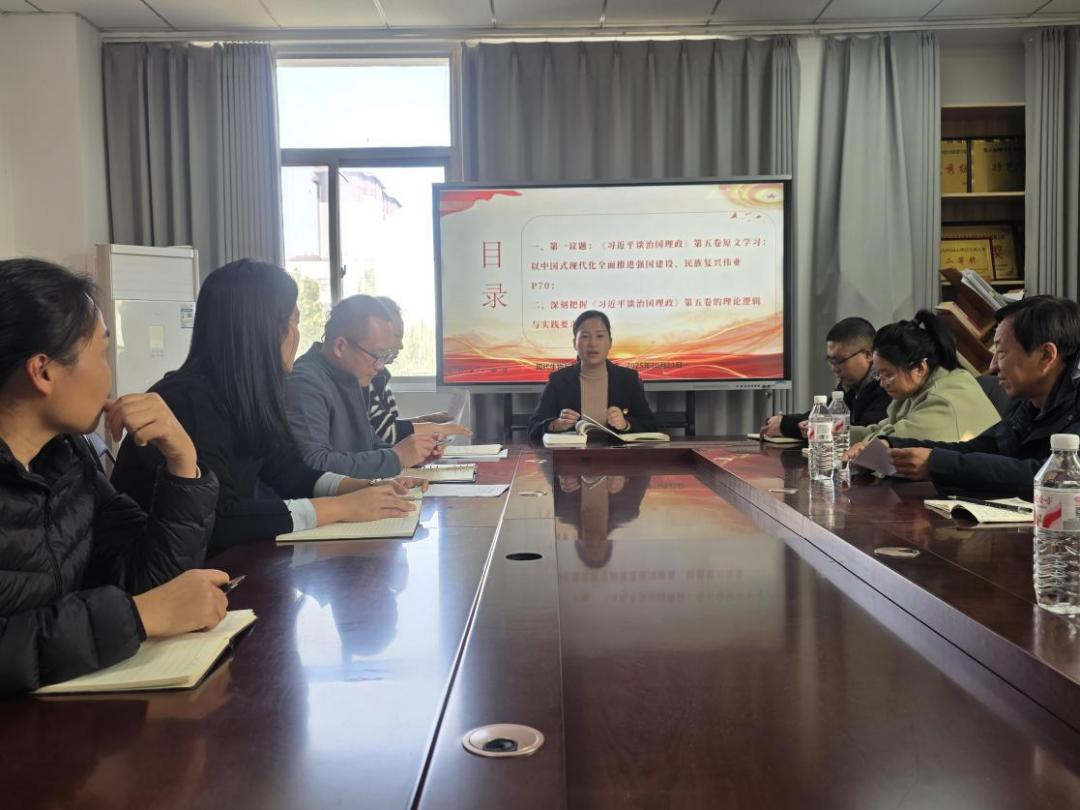 会上,梁艳领学第一议题《习近平谈治国理政》第五卷中“以中国式现代化全面推进强国建设、民族复兴伟业”原文内容。副经理高莉丽领学“深刻把握《习近平谈治国理政》第五卷的理论逻辑与实践要求”。