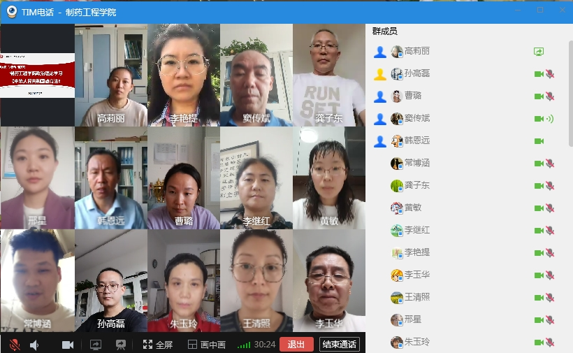 为做好2021年新修订的《中华人民共和国教育法》的学习宣传和贯彻实施工作,制药工程公司党总支于2021年9月7日下午组织全院教职工通过线上QQ视频会议集中进行专题学习。