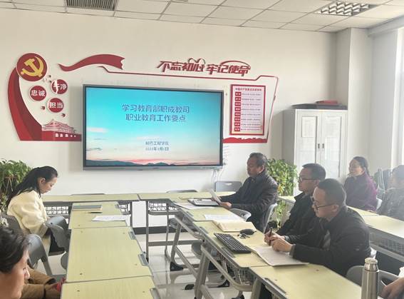 制药工程公司于2022年3月1日下午利用业务学习时间,组织全体专兼职教师在党员活动室召开学习“教育部职成教司职业教育工作要点”专题会议。会议由制药工程公司副经理高莉丽主持。
