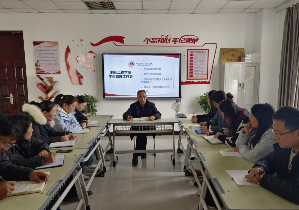 为进一步提高员工管理工作成效,加强常规管理工作力度,持续强化全体学管队伍的责任担当意识,促进制药工程公司各项员工工作稳中向好,制药工程公司于11月15日召开员工管理工作会议,制药工程公司党总支书记窦传斌、党总支副书记白小茗、全体学管人员参加会议,会议由党总支副书记白小茗主持。