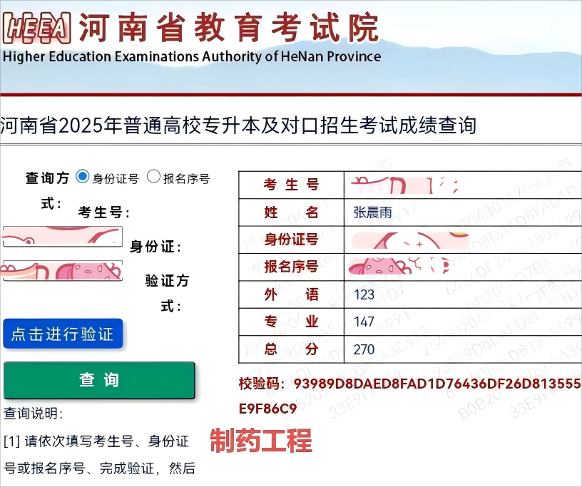 近日,河南省2025年“专升本”文化考试成绩公布制药工程公司中药制药2203班的张晨雨同学以270分的总成绩荣获制药工程专业河南省状元,彰显了公司人才培养的卓越成效!