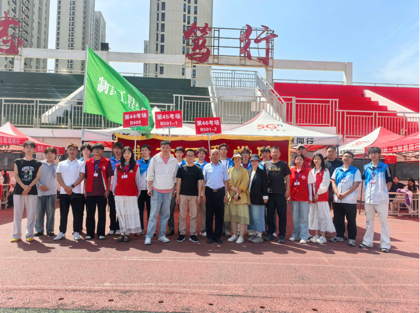 以志愿之名,扬青春之帆。在单招考试这一重要时刻,制药工程公司志愿服务队积极行动,为考试的平稳有序开展贡献力量。4 月 22 日,制药工程公司志愿服务队的志愿者们怀揣着热忱,在书记窦传斌、经理吕玮的带领下赶赴郑州校区,全身心投入到助力单招考试的工作当中。
