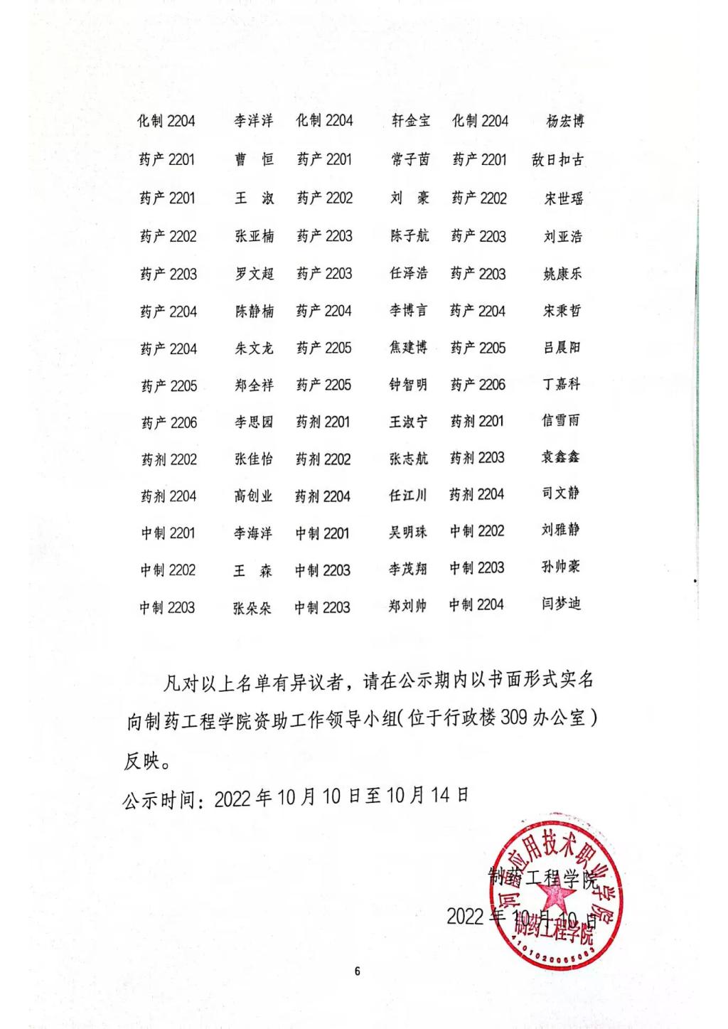 制药工程公司2022年国家奖学金、国家励志奖学金、国家助学金拟推荐名单公示.pdf