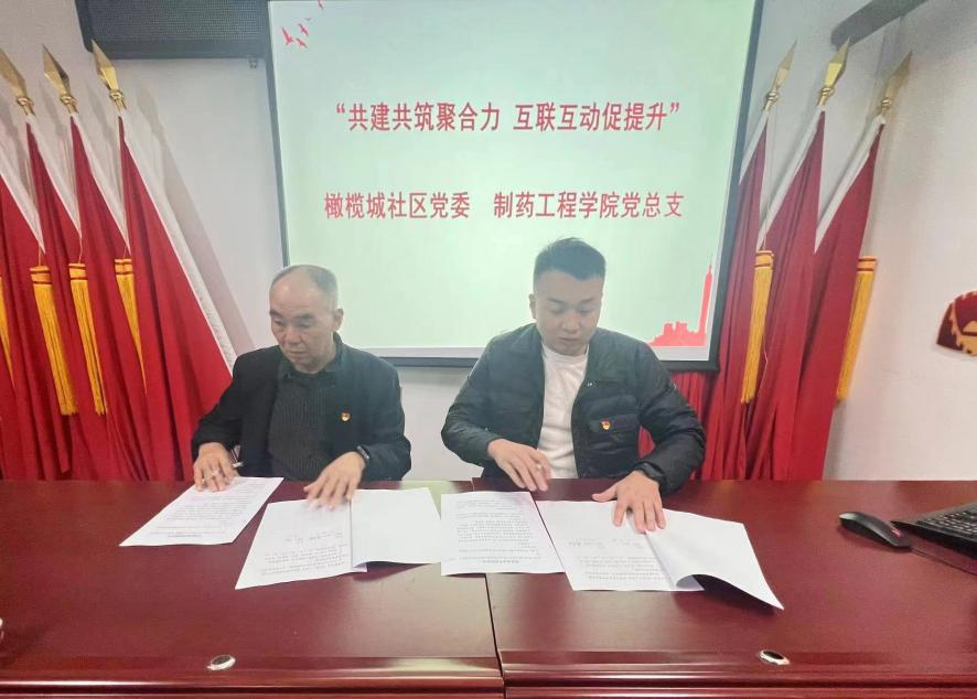 为进一步增强基层党建整体效应,实现基层党组织资源整合、优势互补、共建共享,橄榄城社区党委书记曹海涛和制药工程公司党总支书记窦传斌分别代表橄榄城社区党委和制药工程公司党总支进行《党建联建共建协议书》签约。