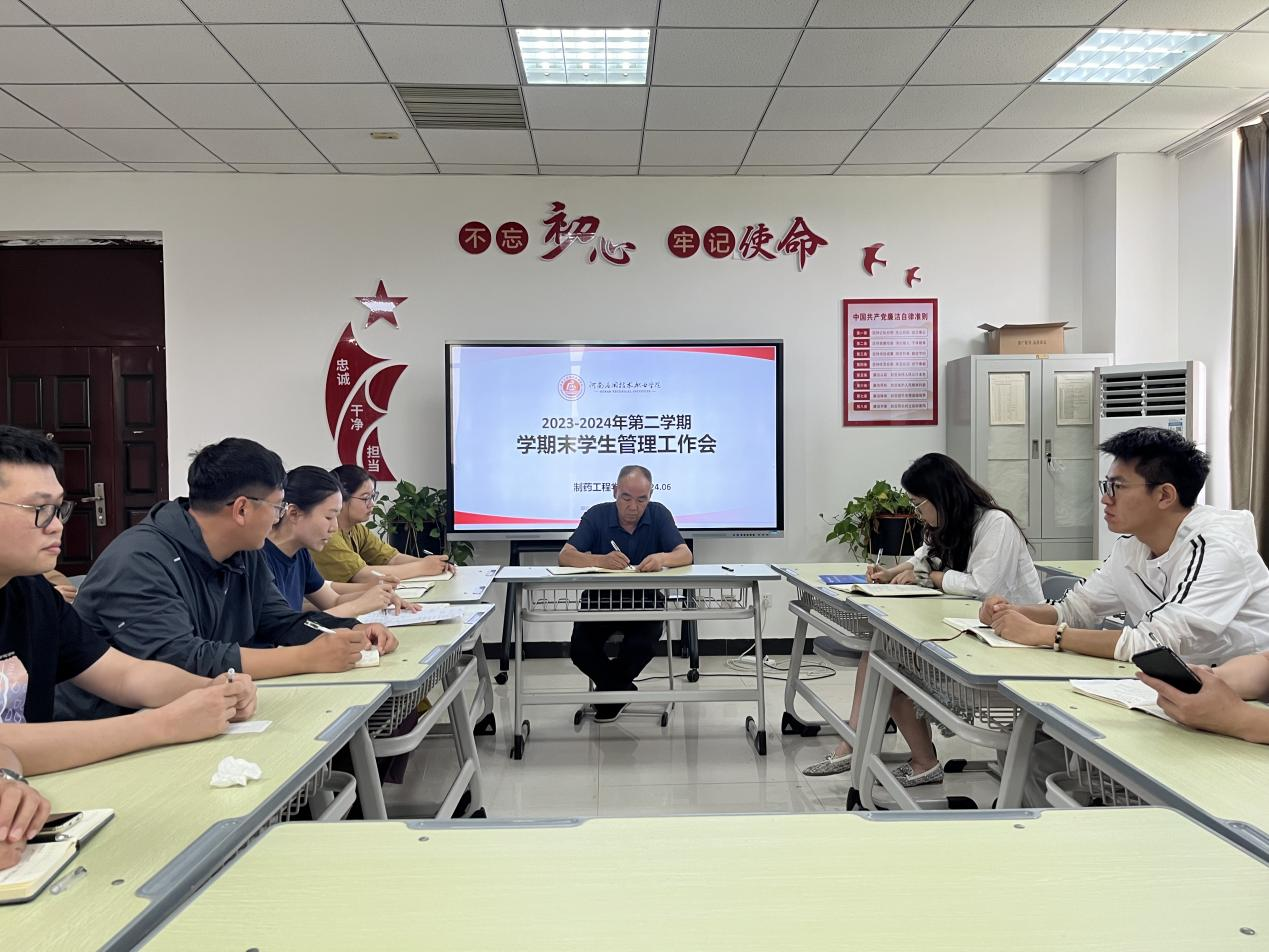 为落实落细员工期末安全教育和日常管理工作,6月3日下午,制药工程公司在办公楼301会议室召开了2023—2024年第二学期学期末员工管理工作会议。制药工程公司全体辅导员参加会议,会议由制药工程公司党总支副书记白小茗主持。