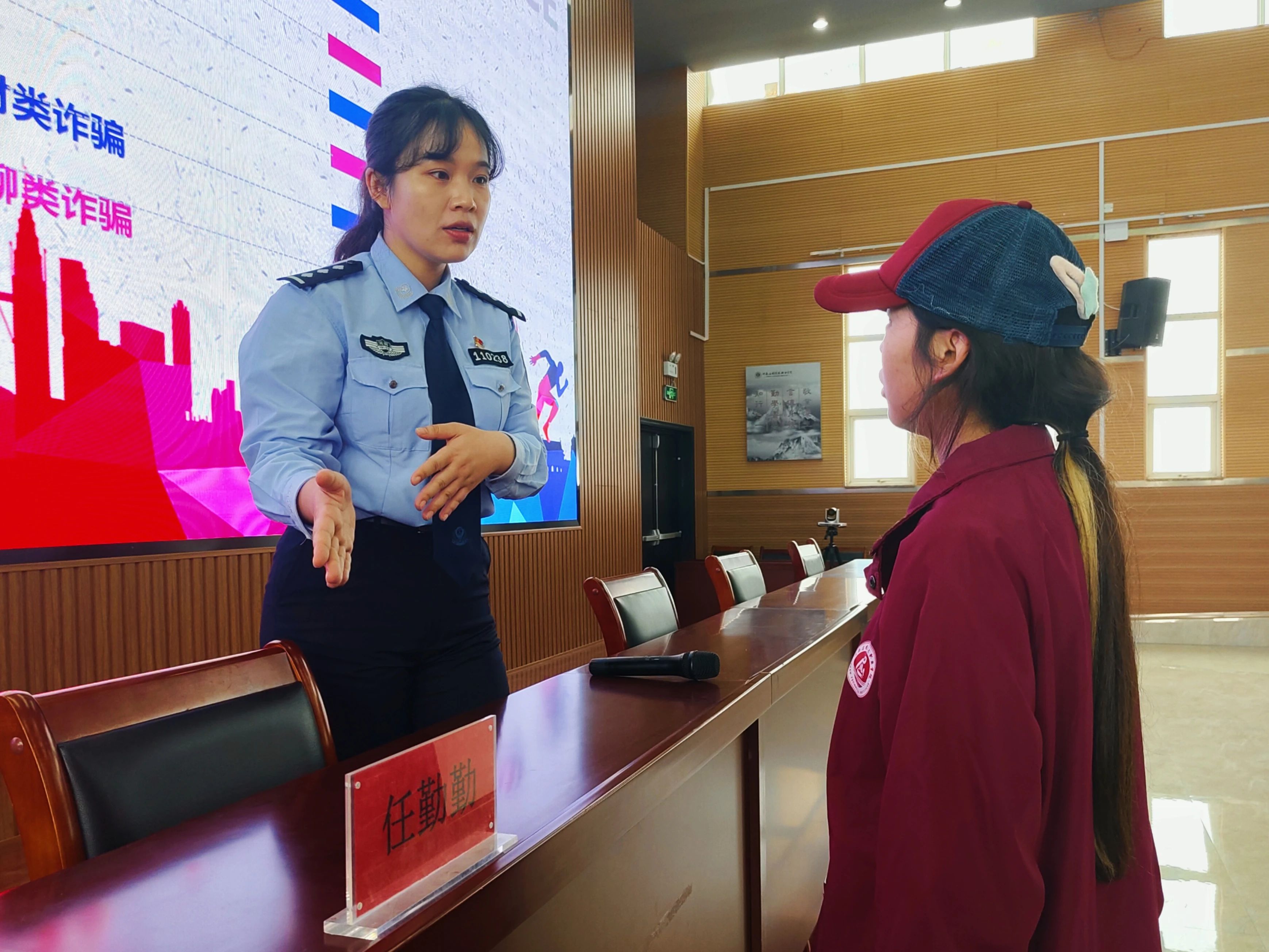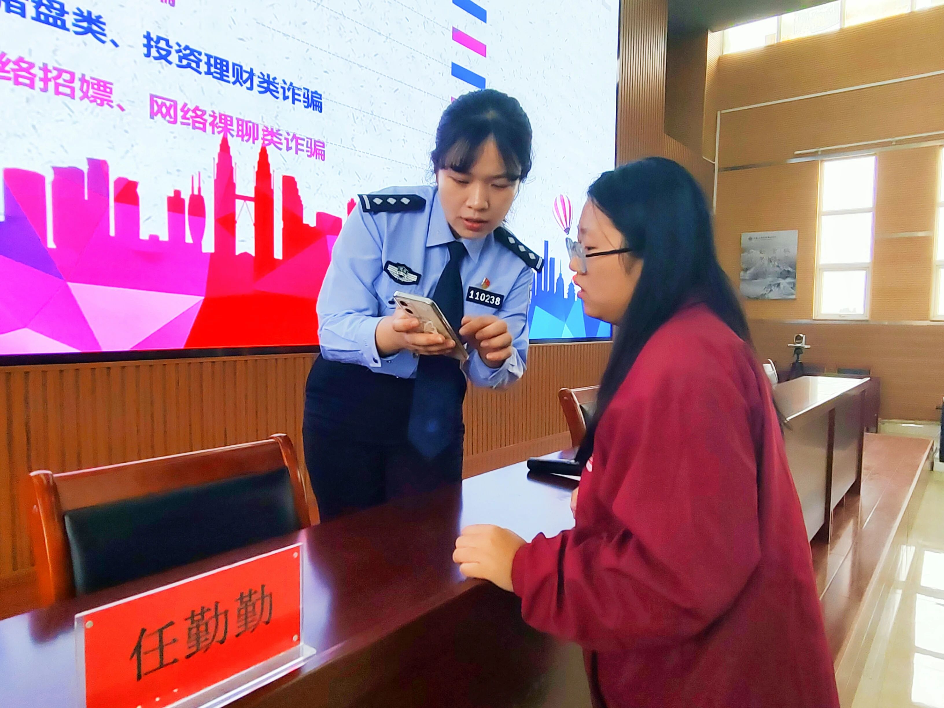 讲座结束后,公司向同学们发放反诈宣传页,进一步巩固反诈宣传成效;任警官与同学们开展互动,部分同学结合自己的生活经历向任警官进行反诈咨询。