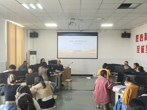 根据公司党委宣传(统战)部安排,制药工程公司党总支于2024年10月8日下午在汽修楼303教室开展政治理论学习专题会,会议由公司党总支书记窦传斌主持,全体教职工参加学习。