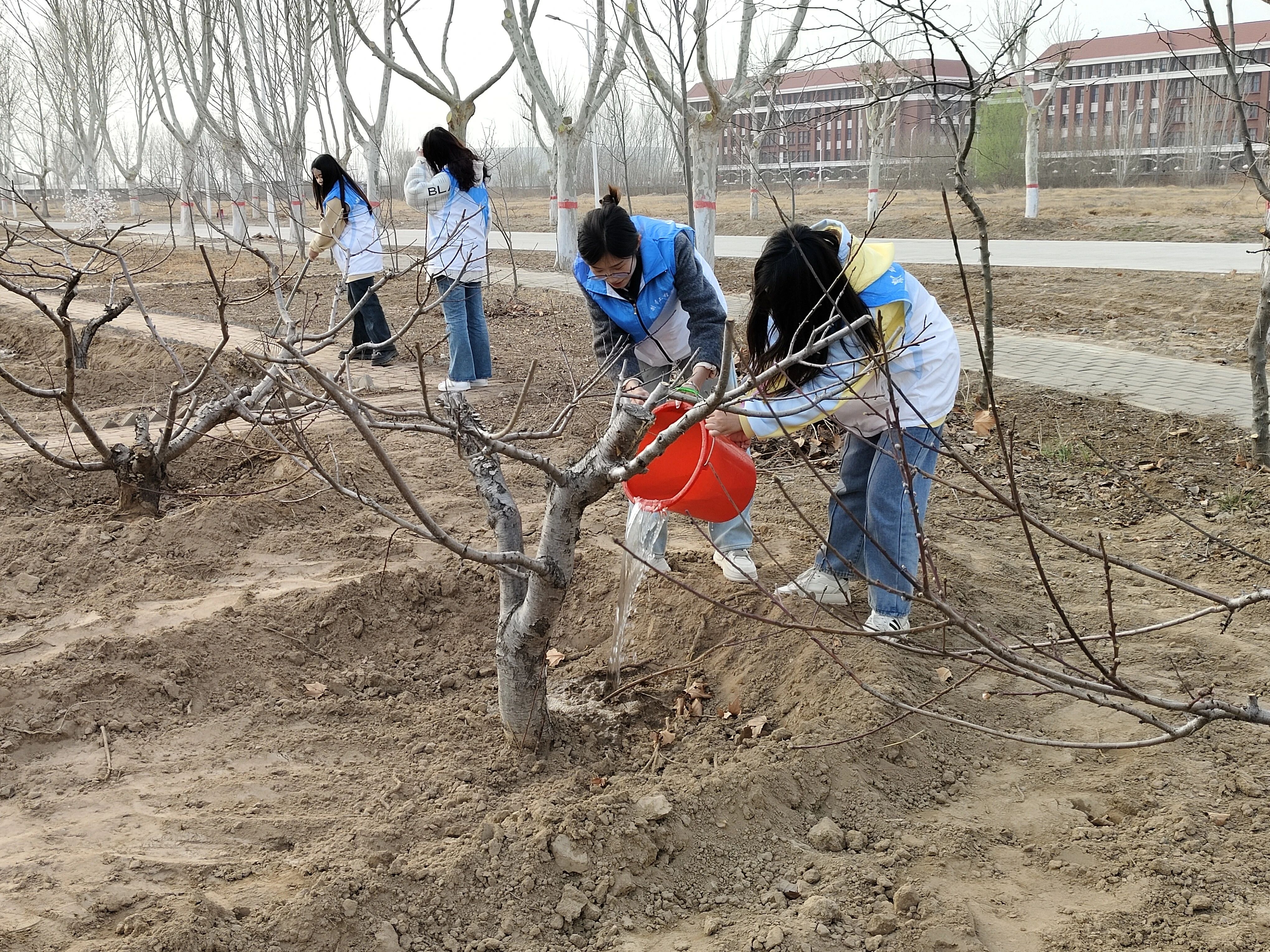 活动伊始,全体参与者迅速按照预先安排分成了两个小组,每个小组都充满了热情与活力,大家纷纷化身为“绿色守护者”,积极投入到后操场的绿植养护工作中。其中一组负责清理杂草,他们仔细辨认每一株杂草,小心翼翼地将其连根拔起,确保不伤害到周围的绿植;另一小组则负责浇水,他们提着水桶,认真地为每一棵树苗浇灌,确保水分充足,整个过程中,大家分工明确、配合默契,志愿者的行动为校园增添了生机。