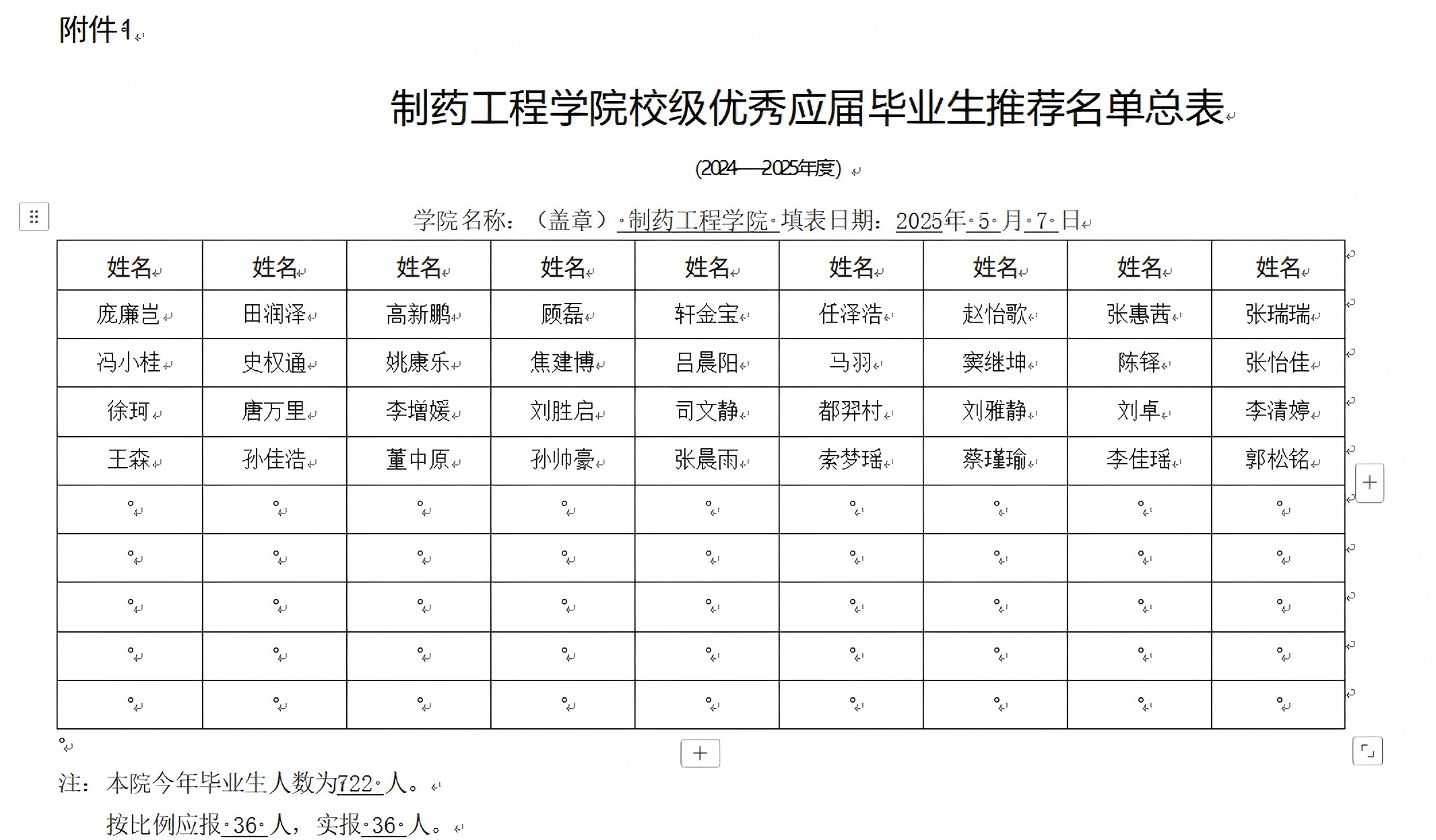 1、《制药工程公司校级优秀应届毕业生推荐名单总表》