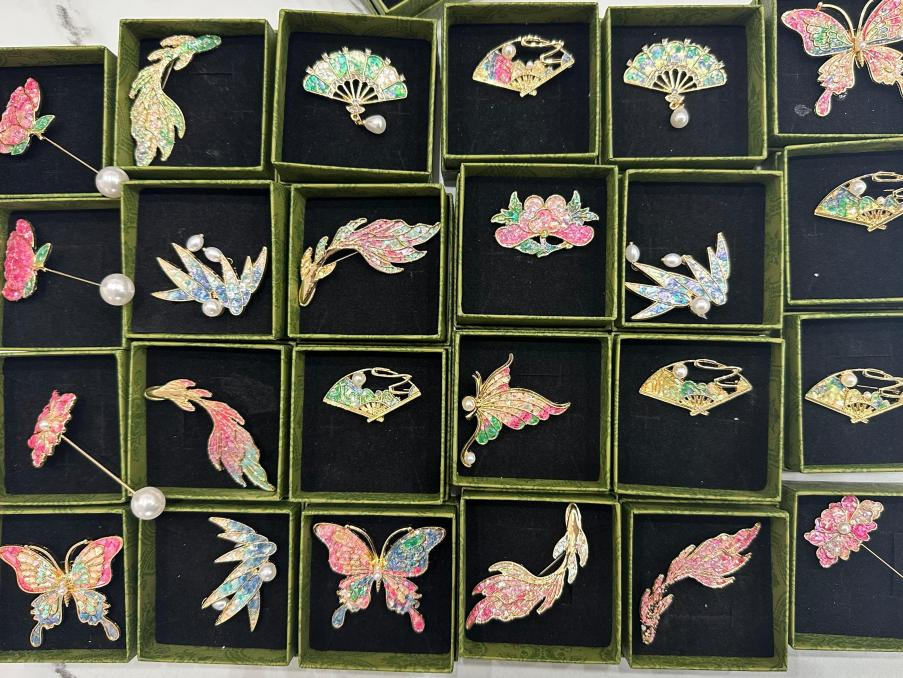 活动现场,员工们先认真了解螺钿工艺的历史渊源与文化内涵,随后在指导下投入胸针制作:从挑选贝壳颜色、规划镶嵌布局,到精准粘贴,每一个步骤都凝聚着专注与巧思。原本零散的贝壳碎片,在指尖的打磨与组合中逐渐焕发生机,成为兼具美感与心意的独特饰品。
