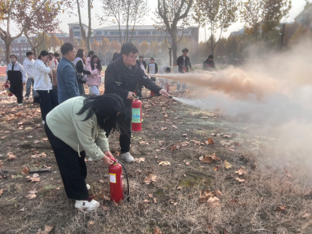 在掌握灭火器“提、拔、握、压”四步使用法及“上风向操作”“保持安全距离”等关键要点后,师生迅速进入实战状态,分组进行了灭火器实操练习。大家轮番上阵,严格按照操作规范,成功完成模拟火点的扑救任务。
