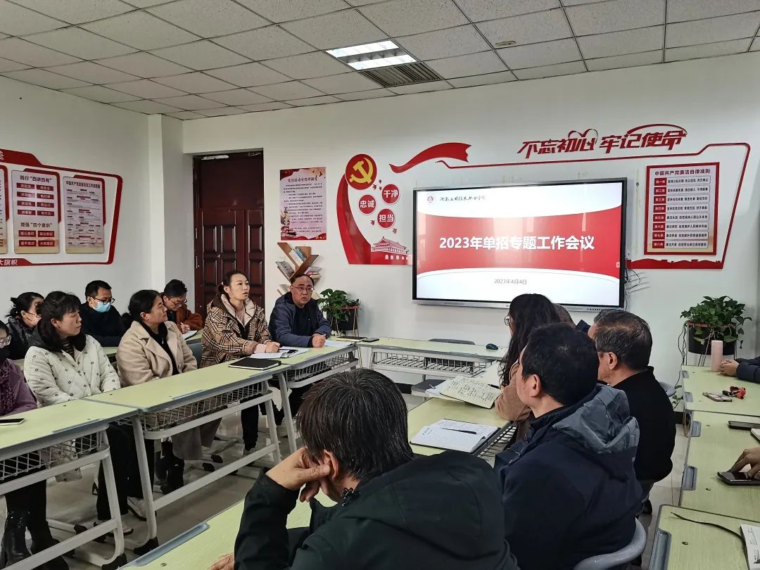 公司成立单招考试工作领导小组,组织召开单招考试筹备会,就考生报考、考务安排、综合协调、后勤保障等工作进行部署和安排。