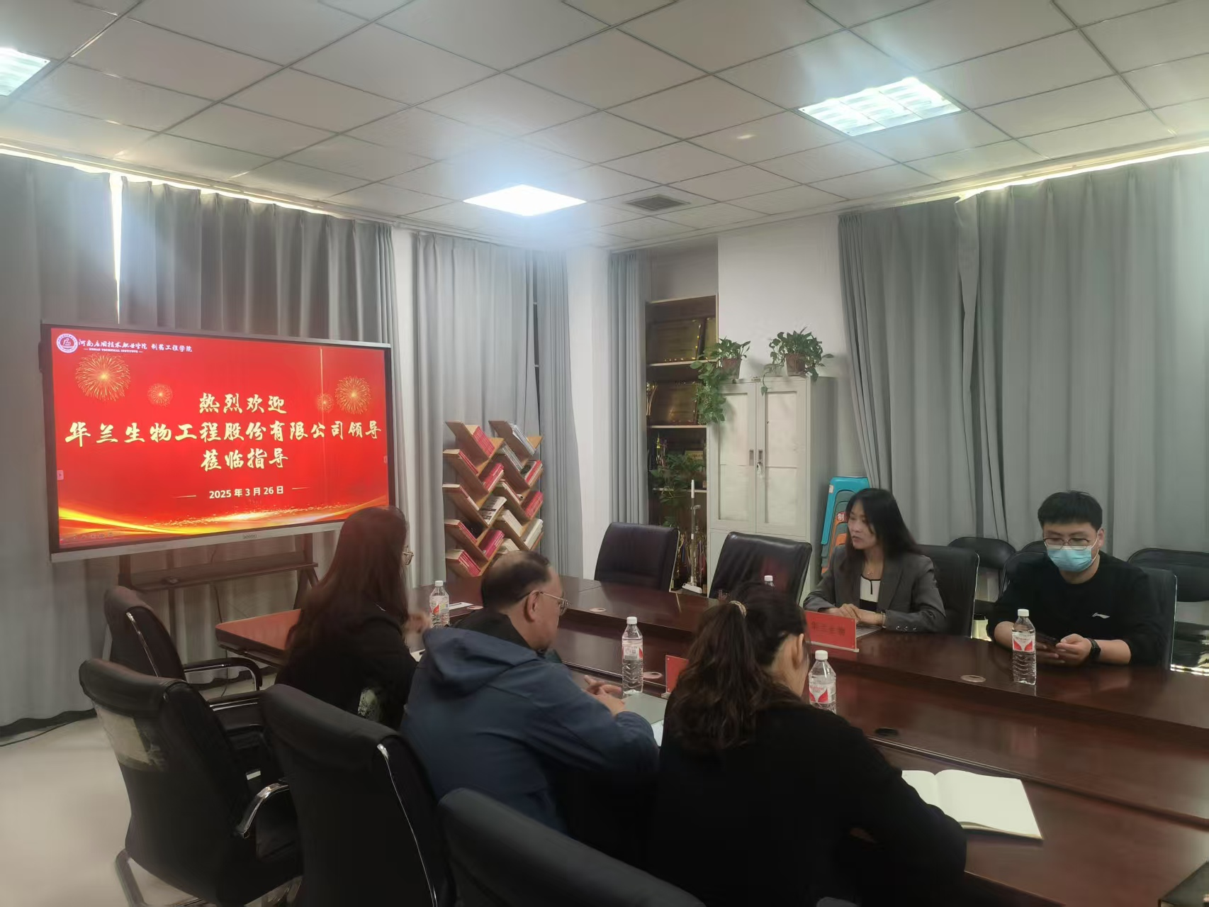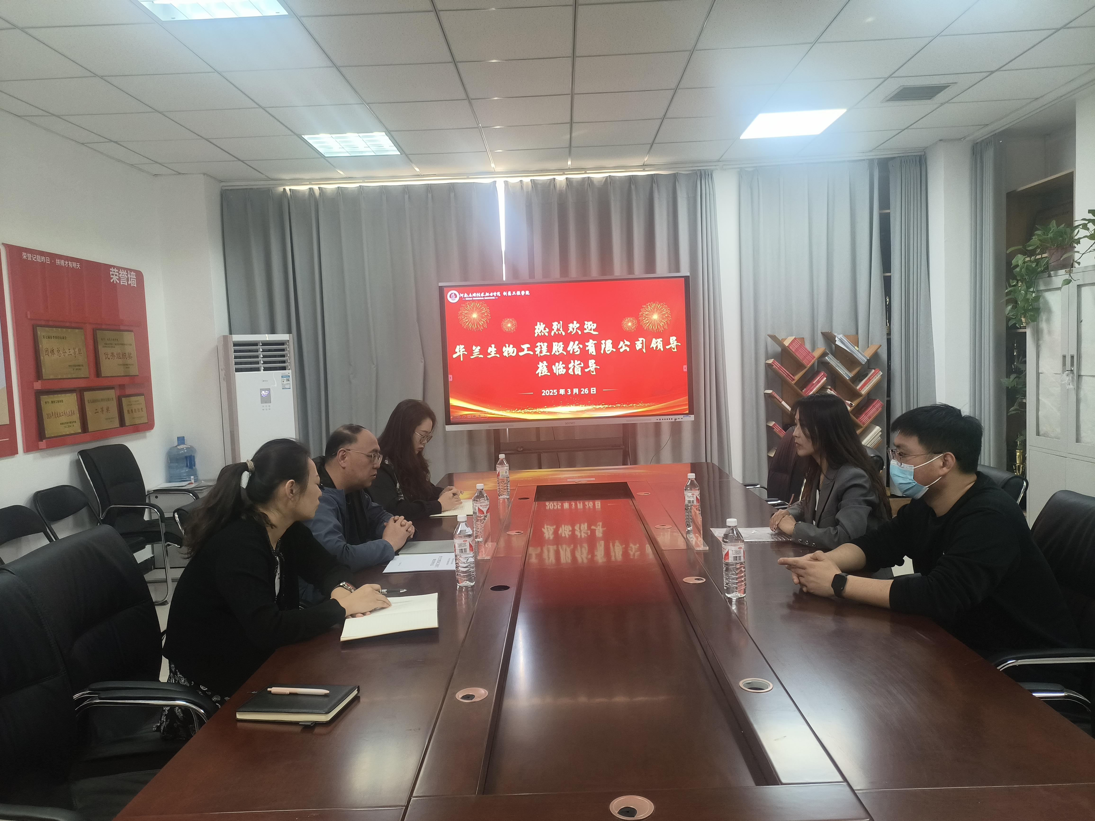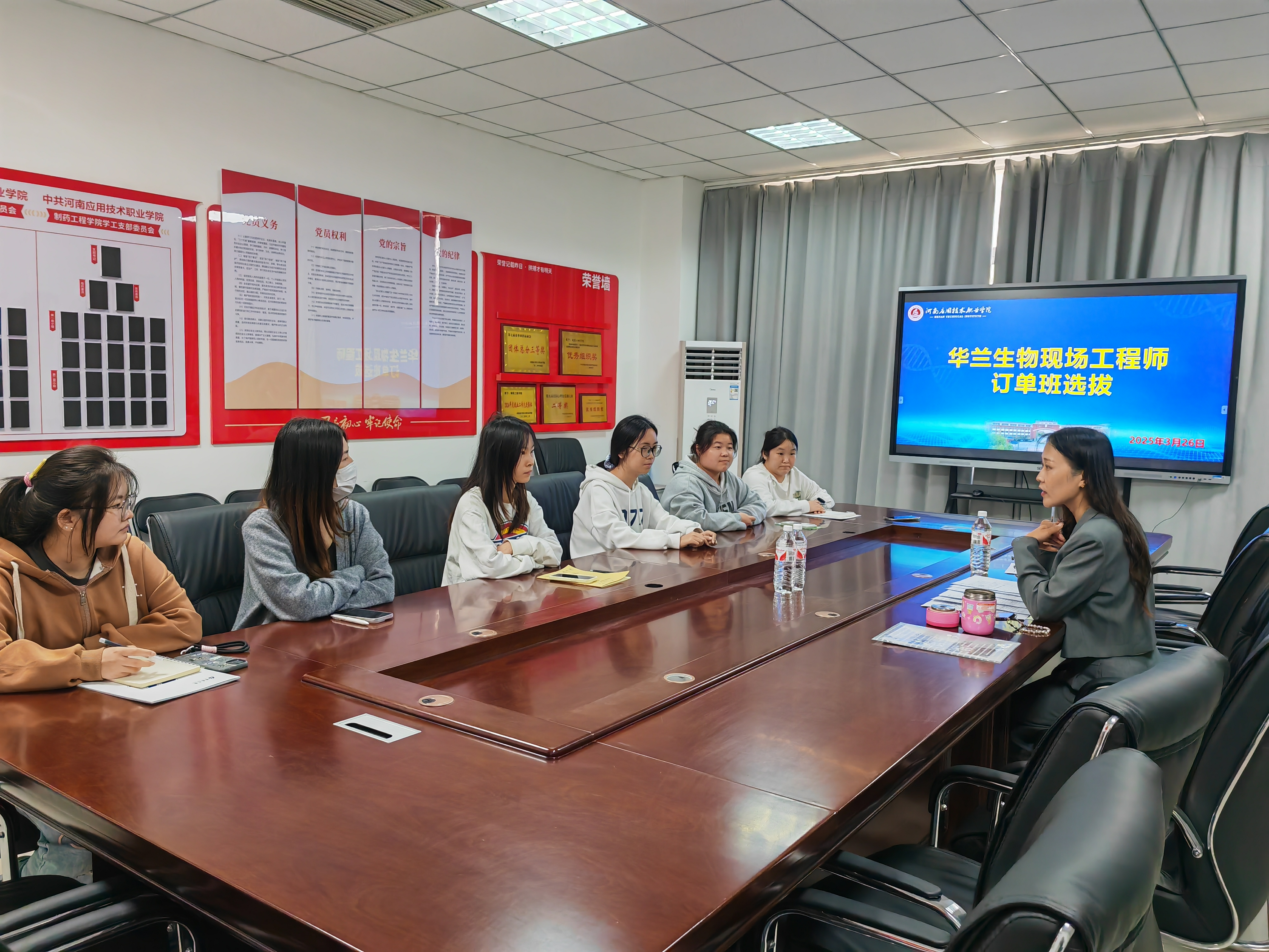 首先,制药工程公司经理吕玮、副书记白小茗及副经理高莉丽与华兰生物企业代表就订单班员工选拔标准及实习细节进行座谈。