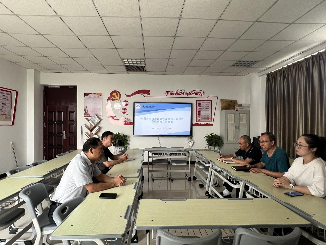 9月4日下午,河南福川医药科技有限公司总经理冯全新、副总经理黄要强,莅临制药工程公司开展交流座谈,制药工程公司书记窦传斌、副处级专职组织员韩恩远、副书记白小茗及相关辅导员参加座谈。