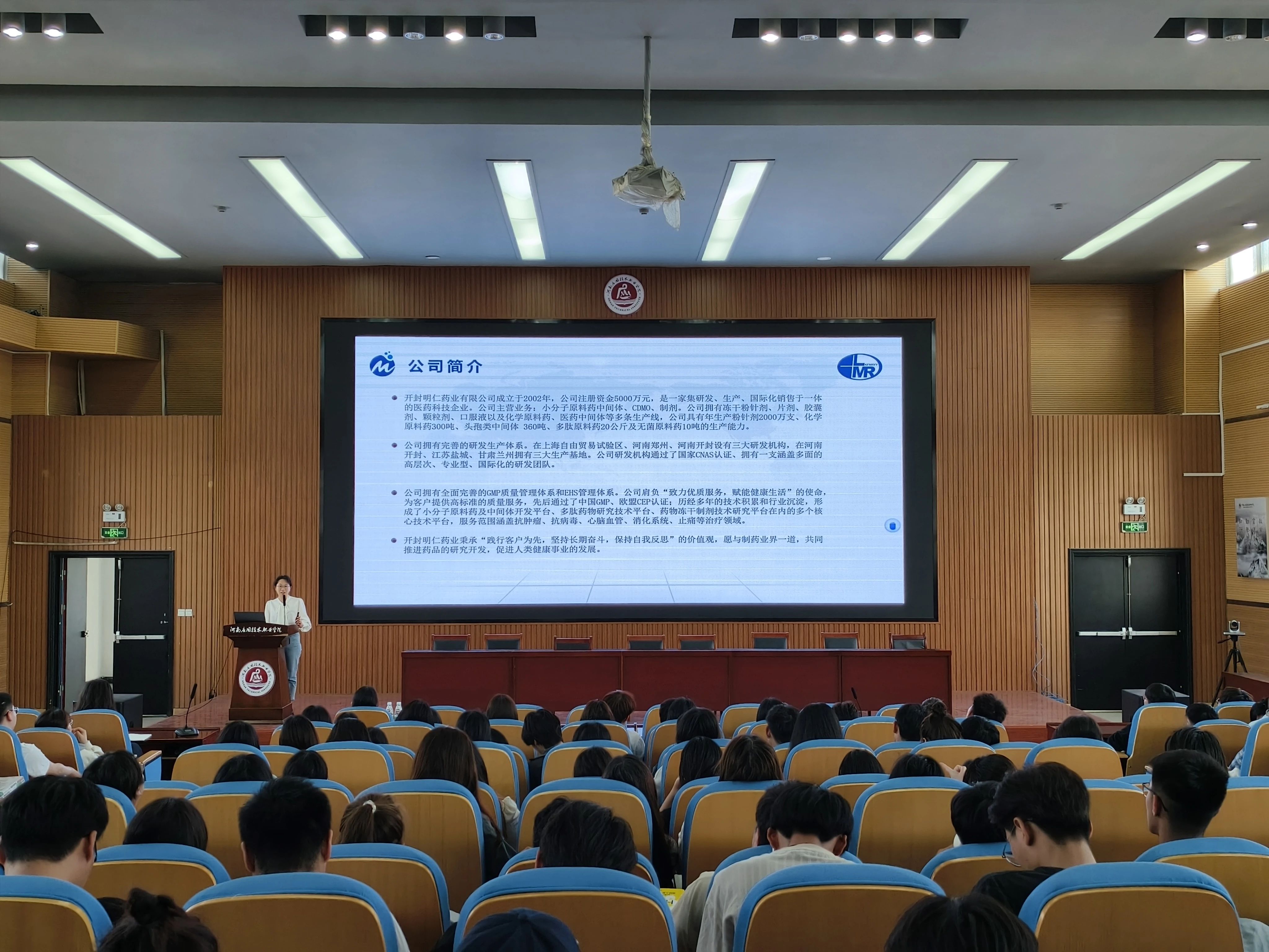 为贯彻落实党的二十大精神,拓宽公司毕业生就业渠道,把握优质就业岗位,切实落实推进就业相关工作,促进公司毕业生充分高质量就业,2024年4月12日制药工程公司邀请上海金不换兰考制药有限公司、开封明仁药业有限公司开展专场宣讲活动。上海金不换兰考制药有限公司人事经理蓝雨、开封明仁药业有限公司生产副总刘华分别带队莅临公司开展校招宣讲,公司党总支副书记白小茗、就业专员邢星、辅导员代东炎及公司2025届200余名毕业生参加宣讲会,宣讲会由邢星主持。