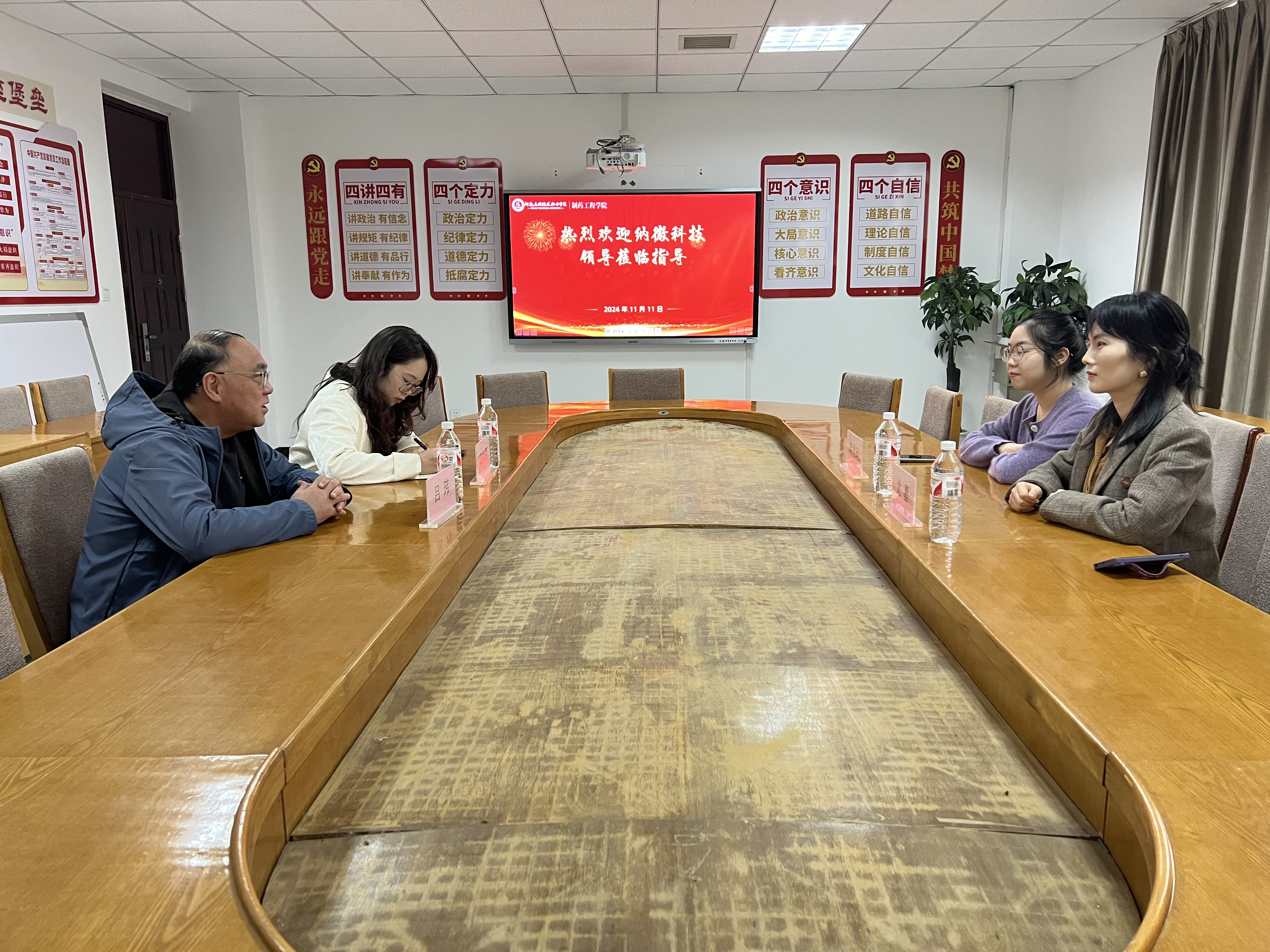 为积极响应国家关于加强校企合作、促进员工高质量就业的号召,2024年11月11日,纳微科技股份有限公司人事总监尤嘉、常熟分公司人事经理蒋雪珂莅临制药工程公司,在行政楼第二会议室开展交流座谈会,公司经理吕玮、党总支副书记白小茗、就业专员邢星出席会议。